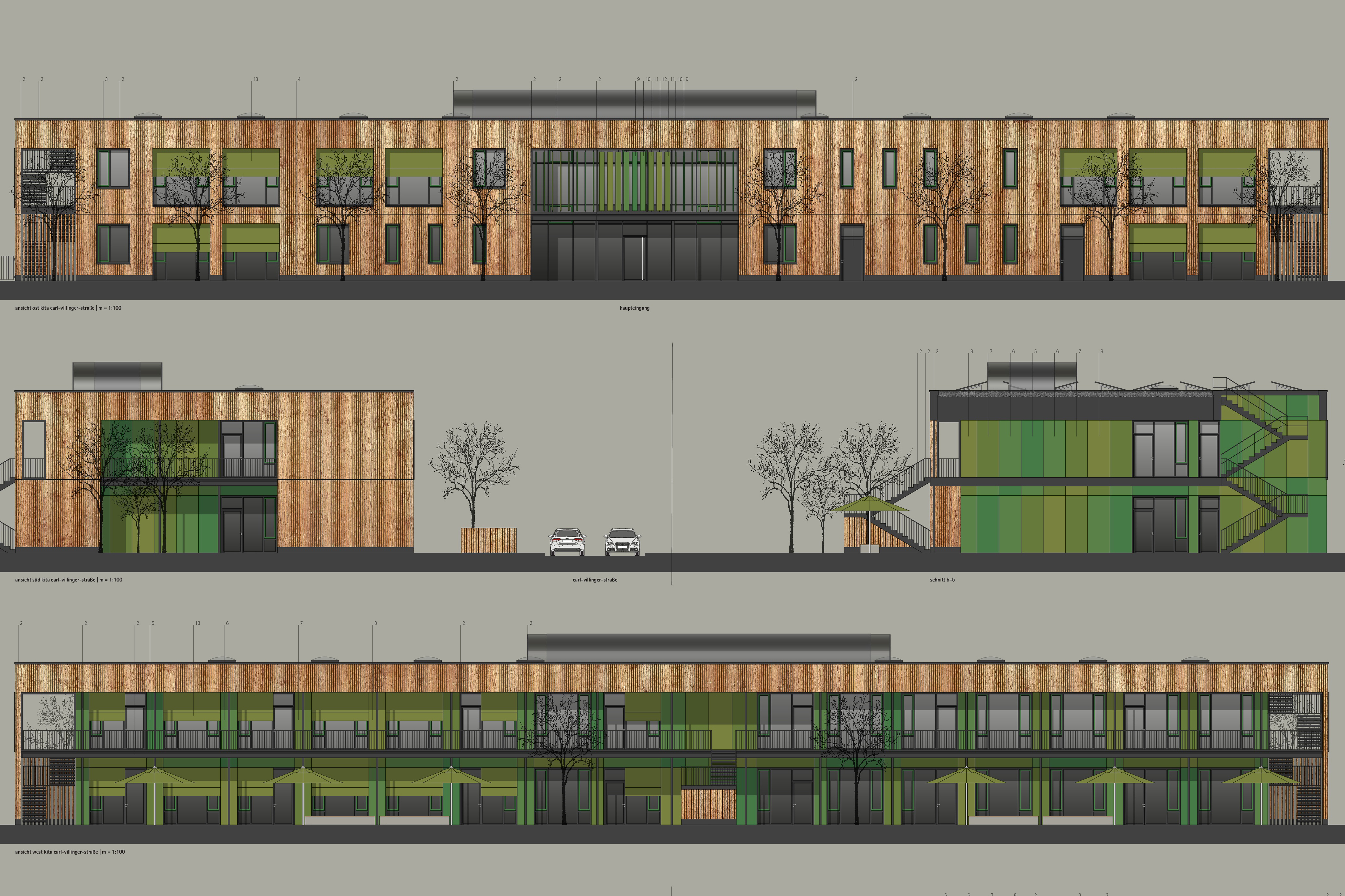 In der Carl-Villinger-Straße in Worms wird zeitnah ein zweigeschossiger Neubau einer Kindertagesstätte mit 8 Gruppen (6 Kindergarten- und 2 Krippengruppen) in Holzbauweise errichtet.